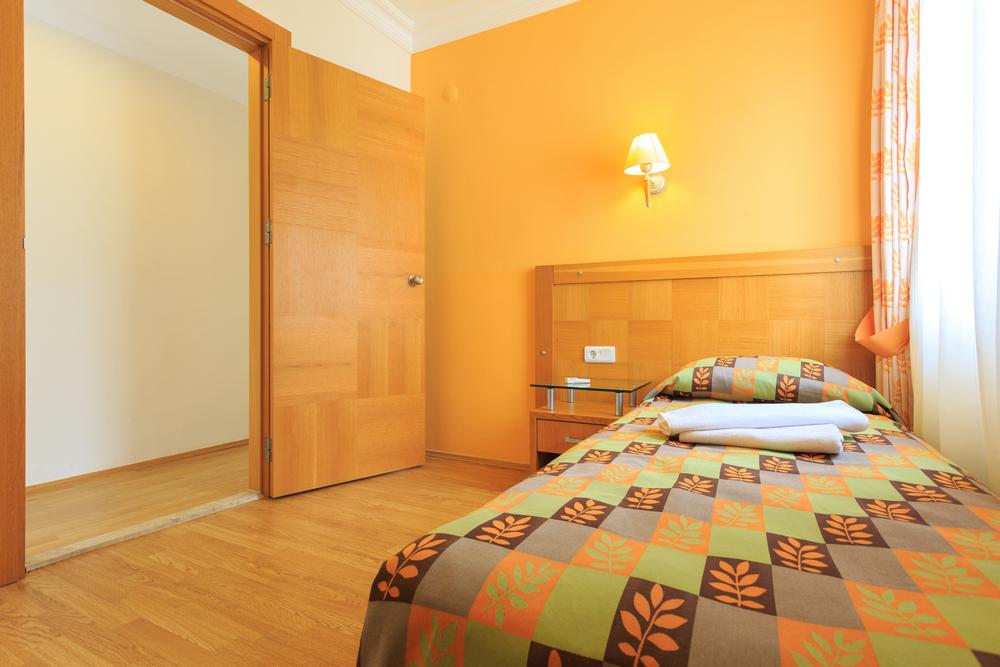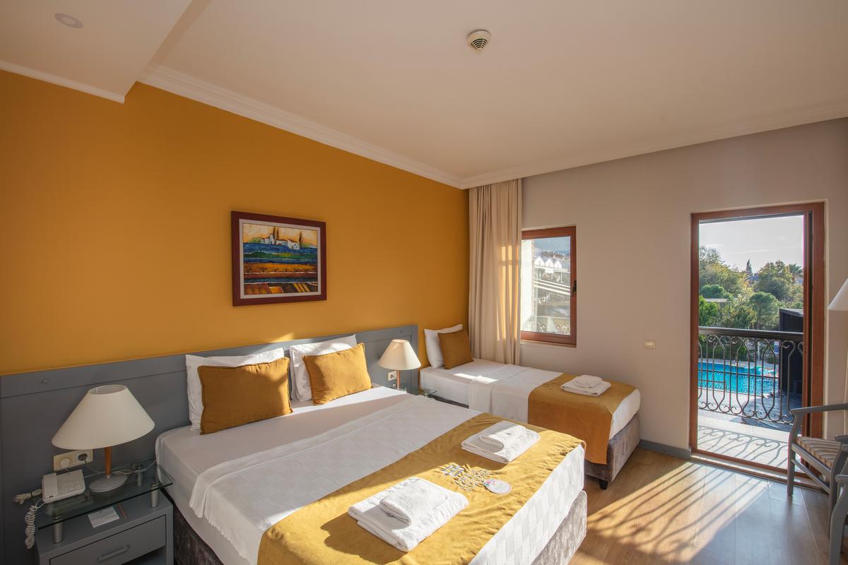 There are 3 bedrooms: 1 double room, 1 twin room with 2 double beds and 1 single room with a single bed in the Family Room with Garden View. The Family room with garden view have a shower next to the master bedroom. There are tables and chairs for 5 people on the large terrace in front of the room for our guests to enjoy the balcony. All bedrooms have air conditioning units. Total 45 m 2 have a width. min. 2, max. It can accommodate up to 5 people.